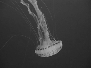 Then I see them, seduced into the eye machines (Stafford and Terpak 2001). Their strange, supple bodies glow, endlessly malleable—even my own language turns poetic rather that descriptive, returning the intelligibility of my discourse back to carnal foundations.[6] Luminous domes undulate through artificially illuminated water. Stinging tentacles and translucent, “ruffled limbs” sustain sensuous and continuous movement. These are members of the phylum Cnidaria.