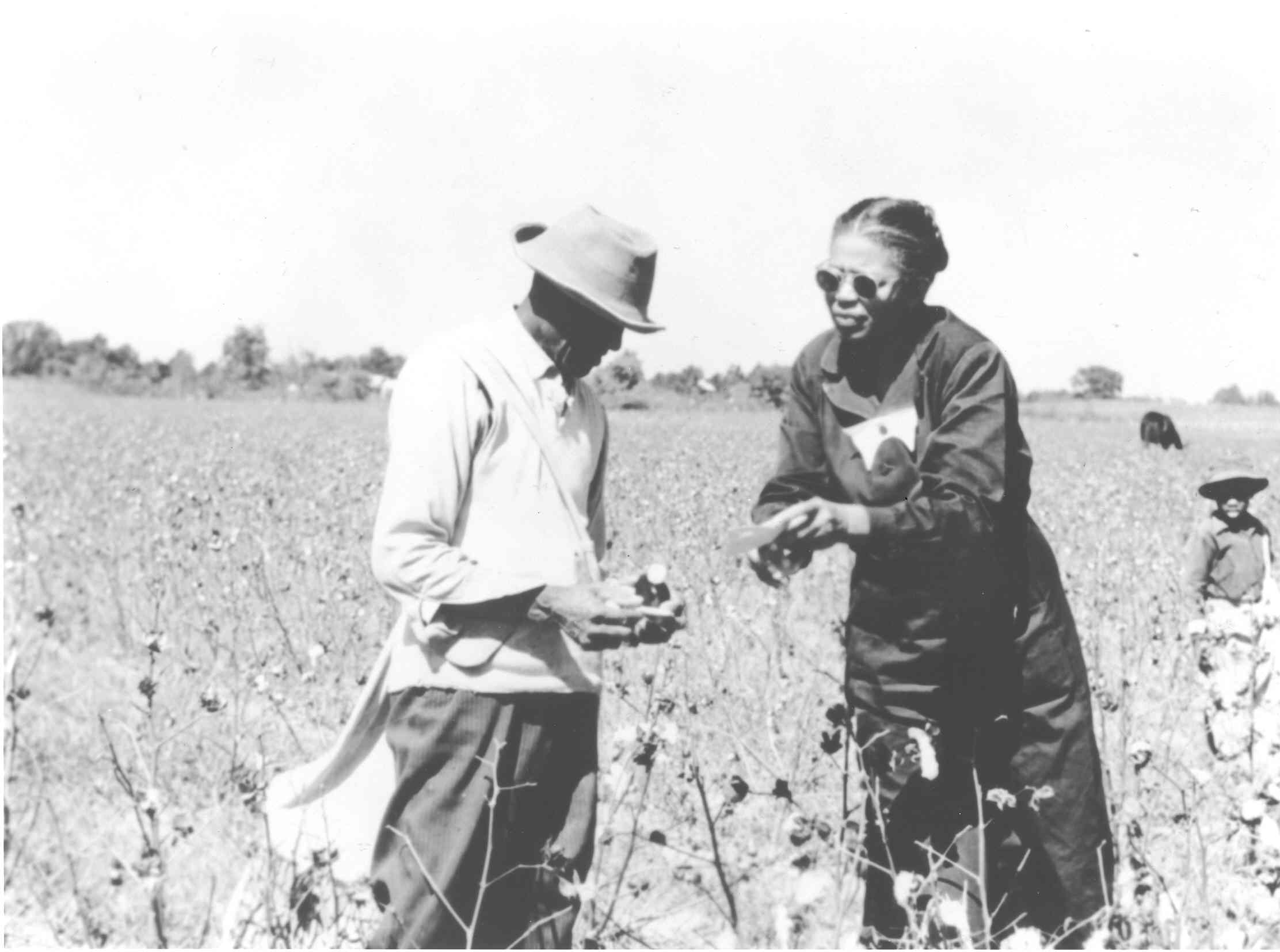 National Archives, Atlanta, GA (1932) Tuskegee Syphilis Study Pictures: unidentified subject, small boy and nurse Rivers in cotton field [in Bad Blood]. [Image]